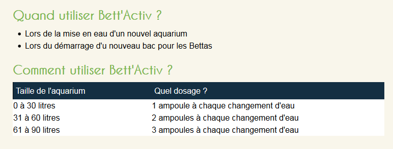Bett'Activ, est un produit spécialement conçu pour les combattants qui permet de conditionner l'eau du robinet afin de la rendre adaptée à votre aquarium d'eau froide.