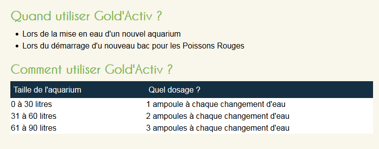 Gold'Activ, est un produit spécialement conçu pour les Poissons Rouges qui permet de transformer l'eau du robinet afin de la rendre adaptée à votre aquarium d'eau froide