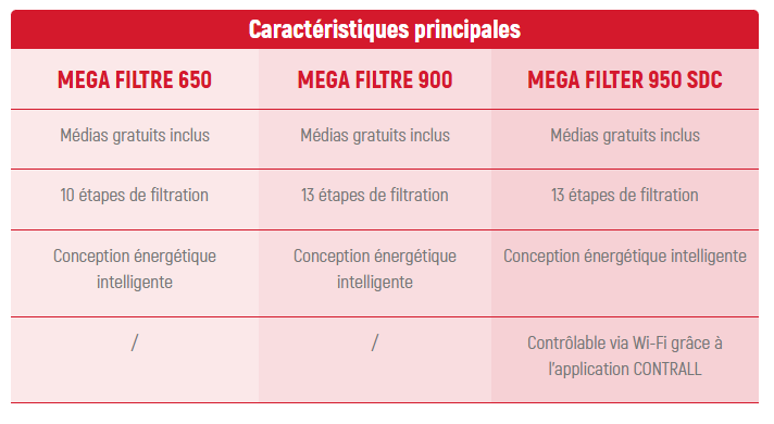 Pensé pour la praticité et la durabilité, ce filtre dispose de trois grands paniers filtrants offrant un large volume de filtration, complétés par un préfiltre dédié qui prolonge la durée de vie des masses filtrantes. Son système d’amorçage rapide, ses raccords de tuyaux rotatifs à 360° et ses accessoires inclus facilitent grandement l’installation et l’utilisation au quotidien.