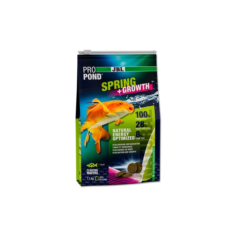 Le JBL PROPOND SPRING+GROWTH montre bien que la proportion protéines/lipides n'est pas encore décisive à elle seule : elle est de 3/1, identique pour Spring (printemps) et pour Autumn (automne), bien que la composition de la nourriture soit totalement différente ! Comme la température de l'eau est identique au printemps et en automne, la proportion de protéines/lipides recommandée est de 3/1, mais les objectifs de l'alimentation sont très différents - et donc également la composition : au printemps, les poissons doivent être remis en forme et remplumés après un hiver de privations afin de résister, par exemple, à la virémie printanière. En automne, par contre, les poissons doivent se constituer des « bourrelets de graisse » pour l’hiver proche, afin de le passer en bonne santé. À cela s'ajoute le comportement différent de l’aliment pour s’enfoncer dans l’eau : au printemps, les poissons redeviennent actifs et peuvent remonter à la surface pour se nourrir (possibilité d'observer l’apparition de maladies). C'est pourquoi les aliments de printemps flottent. En automne, par contre, les poissons doivent se reposer et manger au fond de l’eau. C'est pourquoi la nourriture d'automne est conçue pour couler.