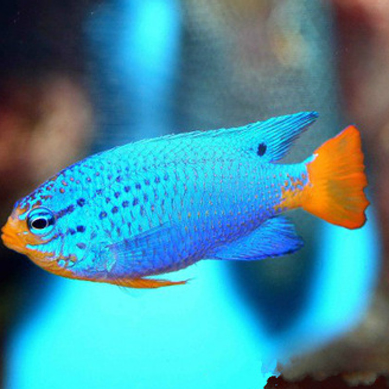 • Chrysiptera cyanea mâle : 3 à 4 cm